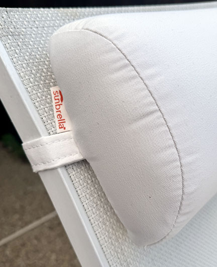 Looking for larger quantities for your commercial property, HOA, Hotel, Country Club, Swim Club or Apartment Complex. Outdoor Contoured Head Rest Pillow in over 200 Sunbrella Fabrics ONE SIZE ONLY – 19" W x 8.5" H x 4" Thick – Made with Sunbrella® fabric, includes zipper opening and 19.5" Velcro straps to secure to your chaise or chair. Custom made to order.