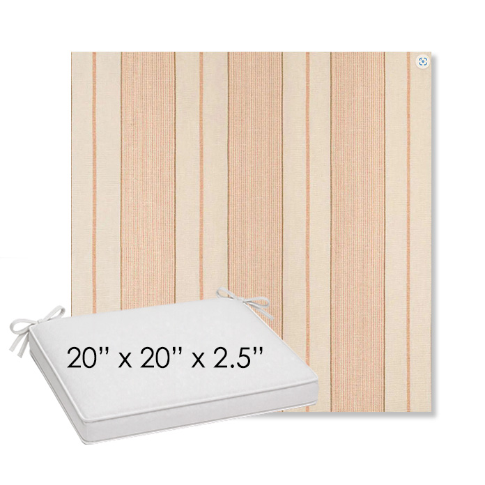 20" x 20" x 2.5" Thick outdoor dining chair seat cushion designed for a simple, ready-to-order fit. Features a boxed construction with piping, fabric ties, and zipper opening. Made in 700+ Sunbrella® fabrics for long-lasting outdoor performance.