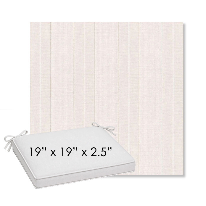 19" x 19" x 2.5" Thick outdoor dining chair seat cushion designed for a simple, ready-to-order fit. Features a boxed construction with piping, fabric ties, and zipper opening. Made in 700+ Sunbrella® fabrics for long-lasting outdoor performance.