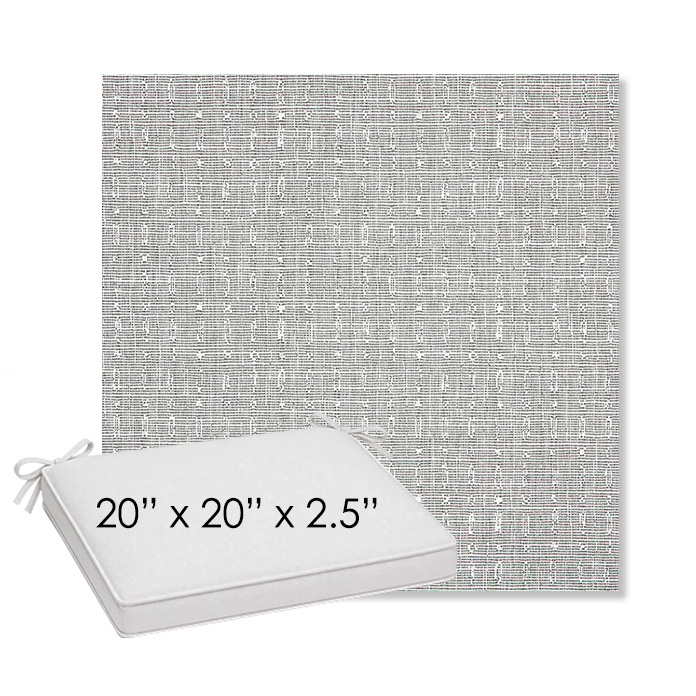 20" x 20" x 2.5" Thick outdoor dining chair seat cushion designed for a simple, ready-to-order fit. Features a boxed construction with piping, fabric ties, and zipper opening. Made in 700+ Sunbrella® fabrics for long-lasting outdoor performance.