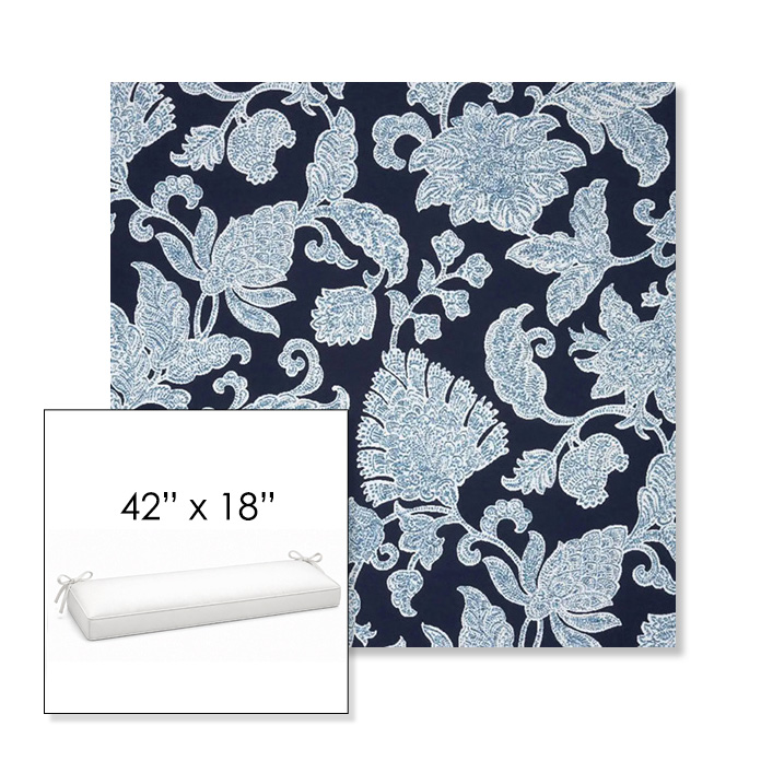 Floral Song Navy | Sunbrella® 42" x 18" Outdoor Bench Cushion