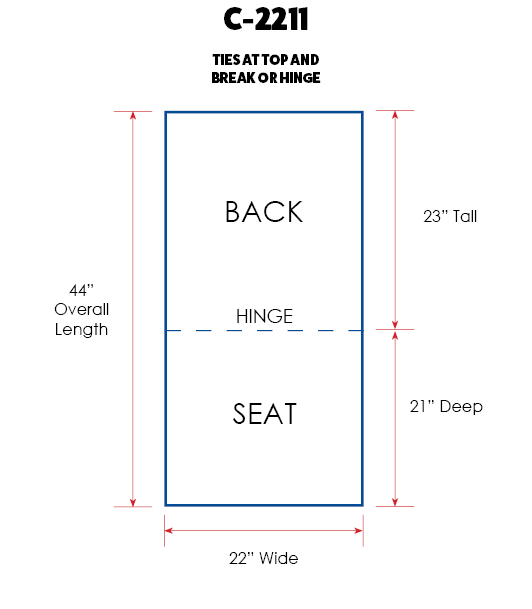 C-2211Universal Club Chair Cushion - Ties at Top & Break22" Wide x 44" Long -  Seat Depth 21"