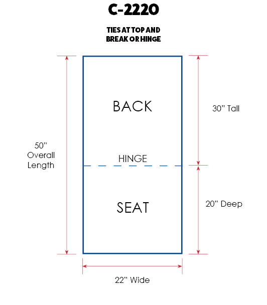 C-2220Universal Recliner Chair Cushion- Ties At Top & Break22" Wide x 50" Long - Seat Depth 20"