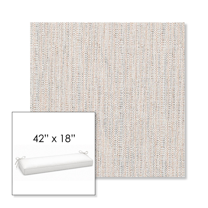 42" outdoor bench cushion designed for a simple, ready-to-order fit. Features a boxed construction with piping, fabric ties, and zipper opening. Made in 700+ Sunbrella® fabrics for long-lasting outdoor performance.