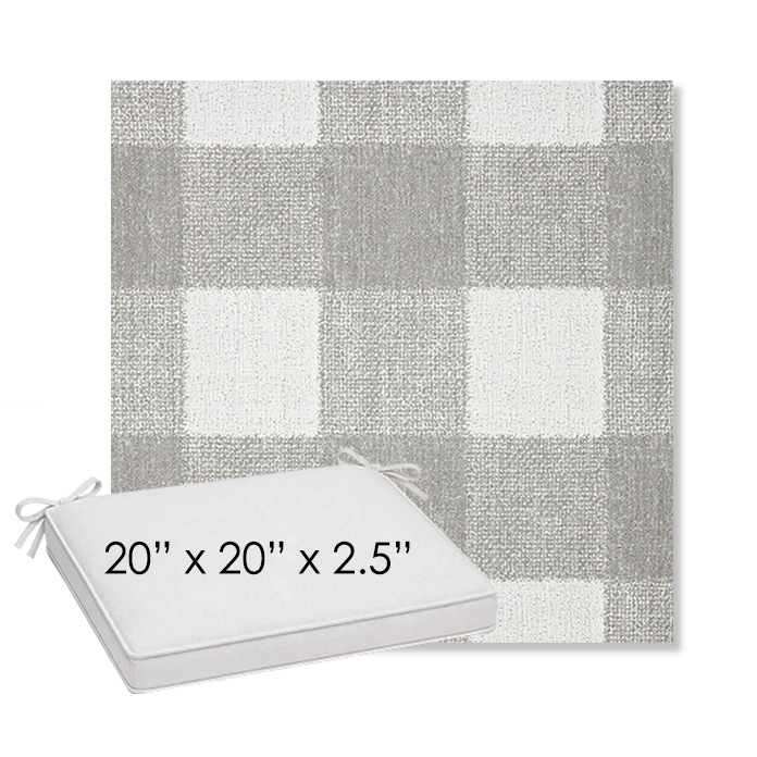 20" x 20" x 2.5" Thick outdoor dining chair seat cushion designed for a simple, ready-to-order fit. Features a boxed construction with piping, fabric ties, and zipper opening. Made in 700+ Sunbrella® fabrics for long-lasting outdoor performance.