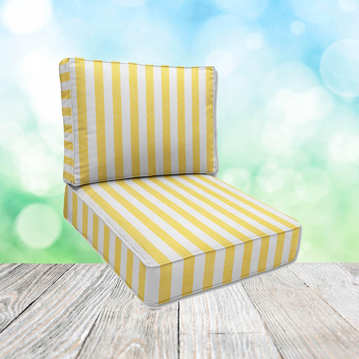 Order outdoor chair cushions in widths from 24" to 26" wide