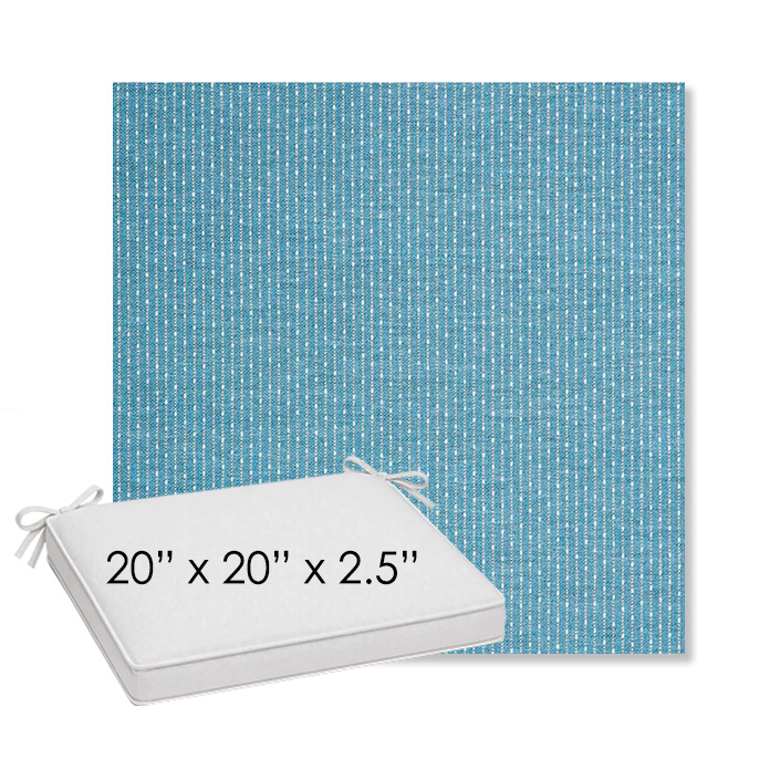 20" x 20" x 2.5" Thick outdoor dining chair seat cushion designed for a simple, ready-to-order fit. Features a boxed construction with piping, fabric ties, and zipper opening. Made in 700+ Sunbrella® fabrics for long-lasting outdoor performance.