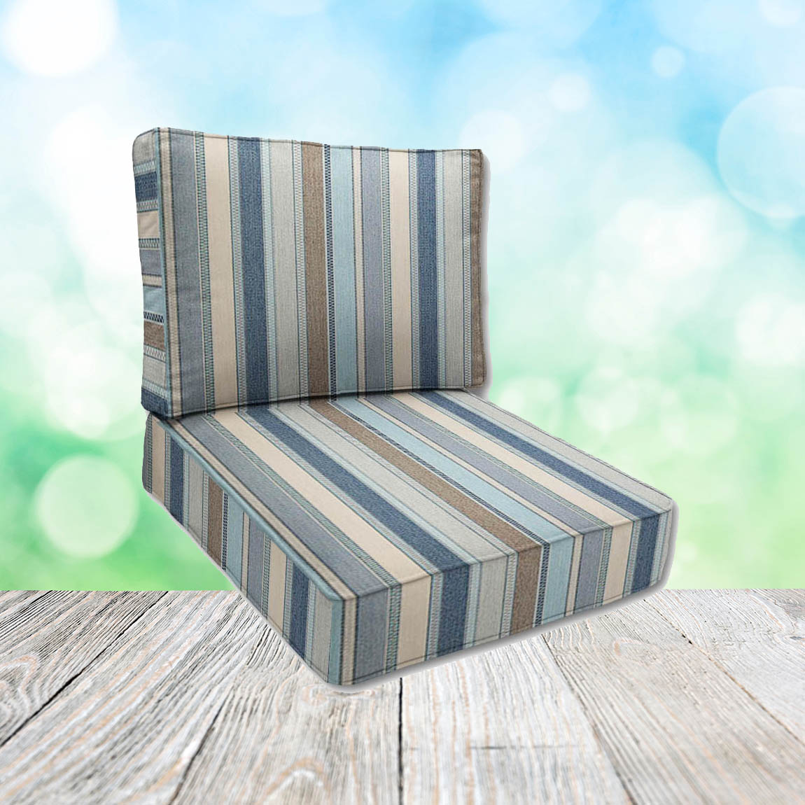 Order outdoor chair cushions in widths from 24" to 26" wide