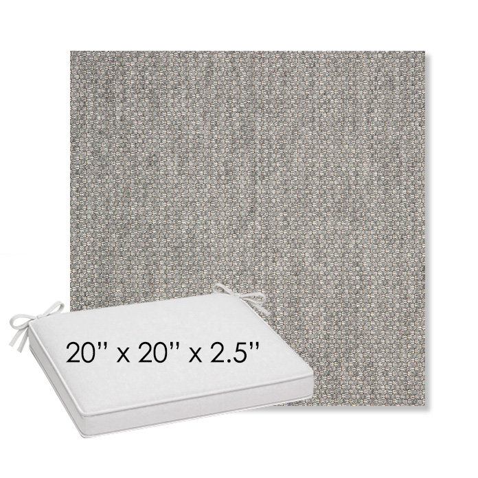 20" x 20" x 2.5" Thick outdoor dining chair seat cushion designed for a simple, ready-to-order fit. Features a boxed construction with piping, fabric ties, and zipper opening. Made in 700+ Sunbrella® fabrics for long-lasting outdoor performance.