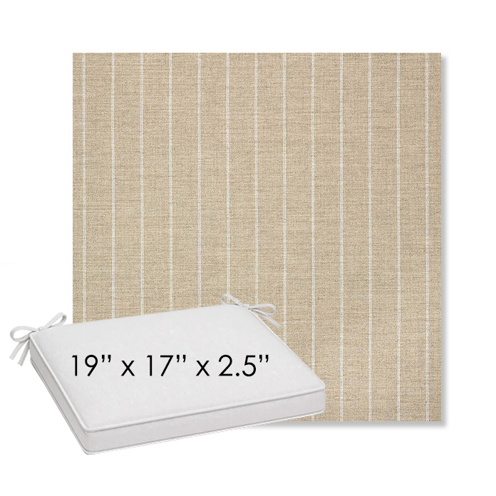 Upgrade your outdoor dining chair seating with our 19" wide x 17" deep x 2.5" thick outdoor dining chair pad or cushion designed for a clean, tailored fit and effortless ordering. Built in a structured boxed style with piping and fabric ties, this cushion delivers both comfort and durability for everyday outdoor living. Whether you're replacing an existing cushion or refreshing your outdoor dining space, this size is ideal for all styles of outdoor patio dining chairs.
